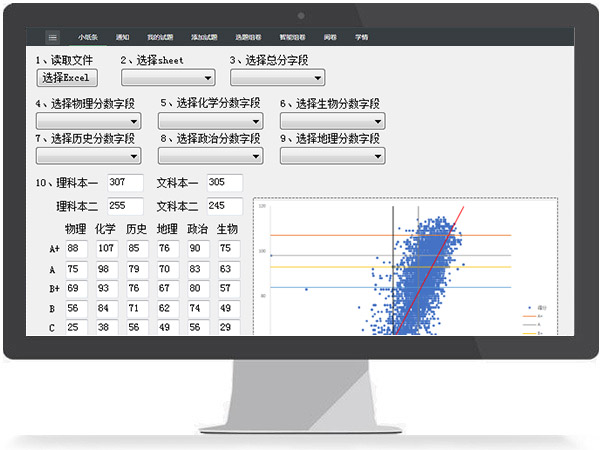 当一次考试或调研后,每一个群体的评测情况怎么样,都是需要从数据采集结果分析得来的。分析的维度,不一定都适用于所有群体。如教育局领导更关心的是整体宏观情况,学校领导更关心的是我们学校在众多学校中所处的位置等等。
